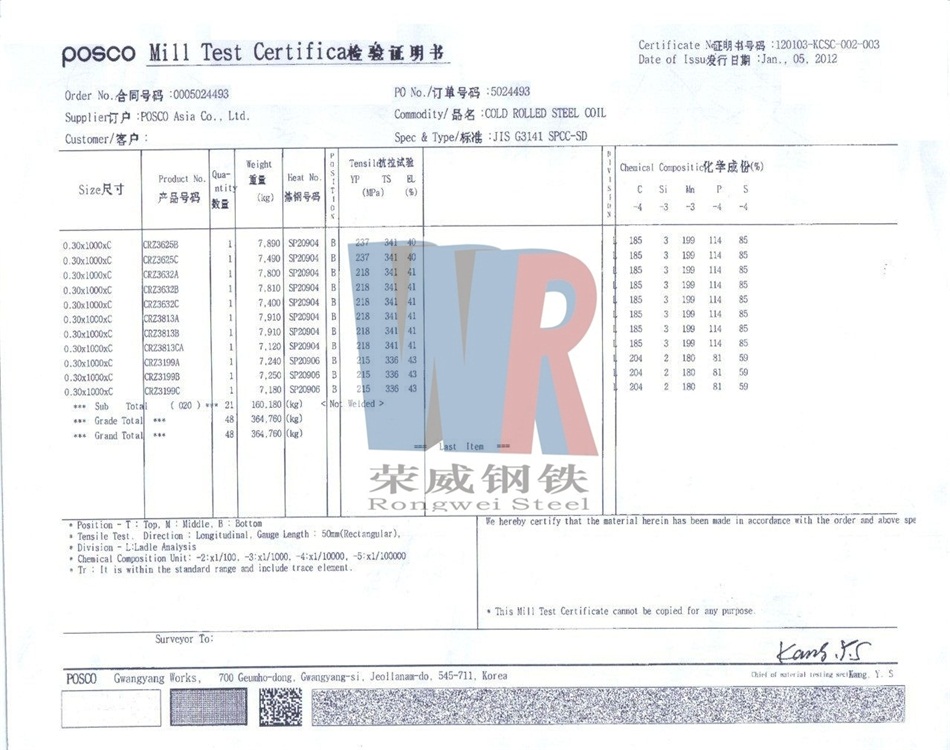 1.上海榮威--韓國(guó)浦項(xiàng)冷軋卷 0.3-1000-C