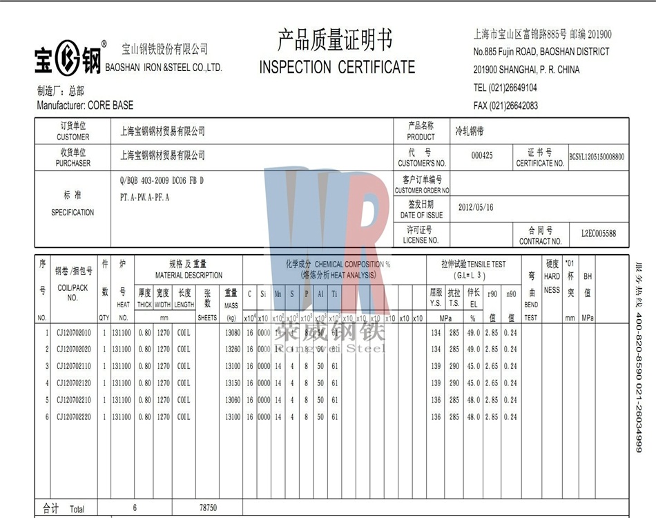 6.上海榮威--寶鋼超深沖冷卷DC06 0.8-1270